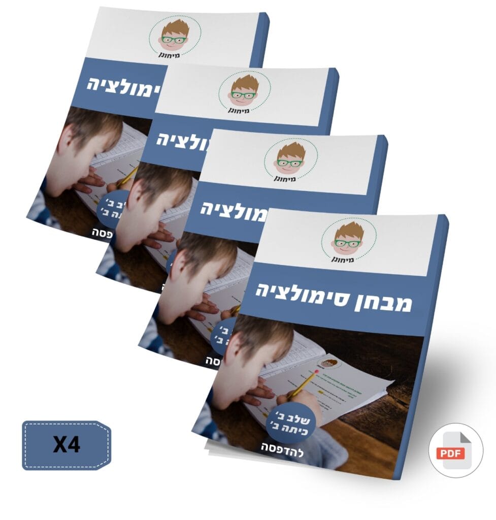 ארבעה מבחני סימולציה מלאים בהנחה, עם שאלות מעודכנות למבחנים האחרונים הדומות באופיין וברמתן לשלב ב' של מבחן המחוננים האמיתי.